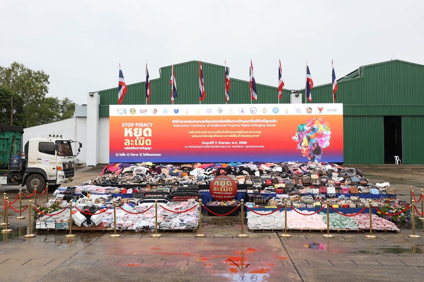 This year’s destruction ceremony eliminated over 1.5 million illegal items worth more than 900 million Baht (USD 28M) — including clothing, cosmetics, auto parts, electronics, and pharmaceuticals.