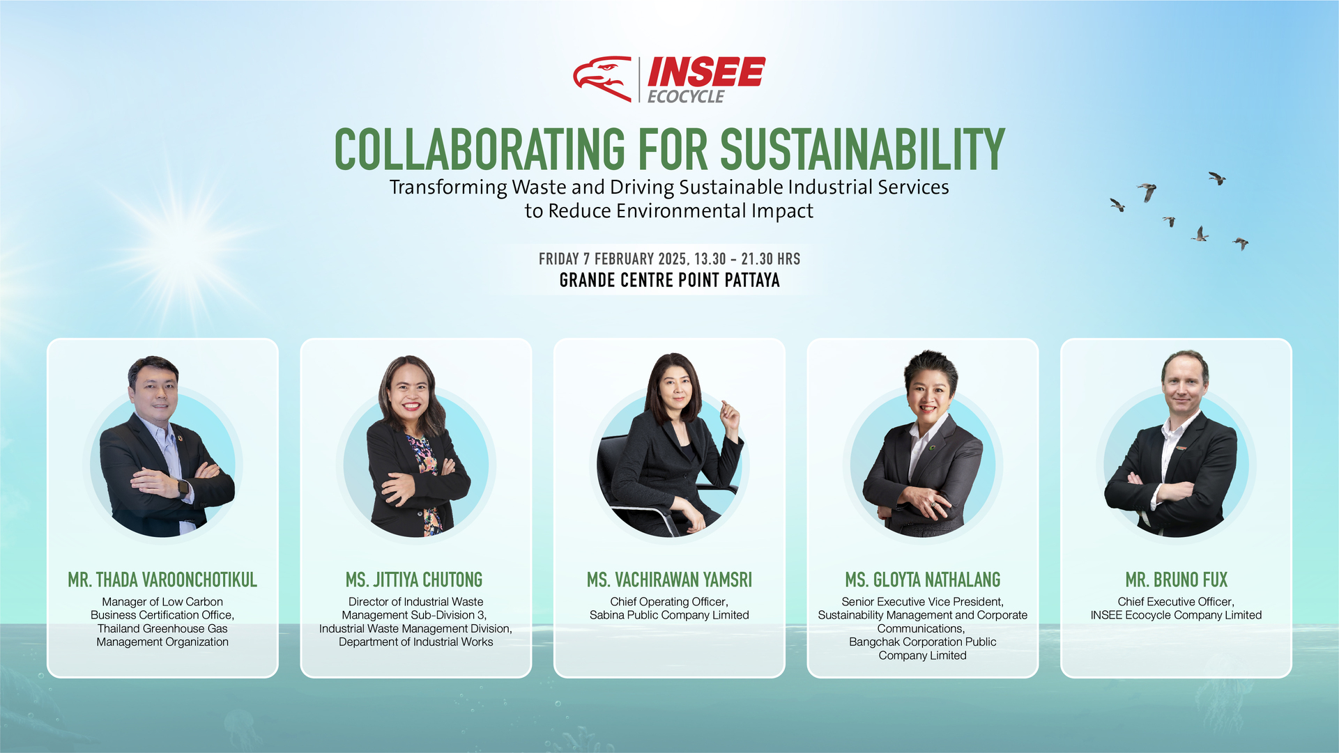 บริษัท อินทรี อีโคไซเคิล จำกัด ขอเชิญท่านเข้าร่วมงานสัมมนาภายใต้หัวข้อ Collaborating for Sustainability ร่วมมือมุ่งสู่เป้าหมายความยั่งยืน” ในวันที่ 7 กุมภาพันธ์ 2568 เวลา 13.30 – 21.30 น. ณ โรงแรม แกรนด์ เซนเตอร์ พอยต์ พัทยา อำเภอบางละมุง จังหวัดชลบุรี โดยภายในงานท่านจะได้แลกเปลี่ยนเรียนรู้เกี่ยวกับการบริหารจัดการของเสีย และงานบริการภาคอุตสาหกรรมอย่างยั่งยืน พบปะสังสรรค์ระหว่างผู้บริหารและทีมงาน