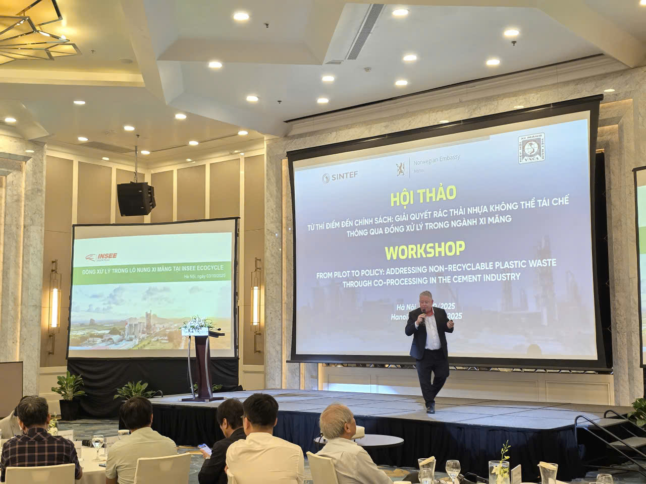 On October 3rd, INSEE Vietnam took part in the workshop “From Pilot to Policy: Addressing Non-Recyclable Plastic Waste through Co-processing in the Cement Industry”, jointly organized by SINTEF (Norway), the Royal Norwegian Embassy in Vietnam, and the Vietnam National Cement Association (VNCA) in Hanoi.