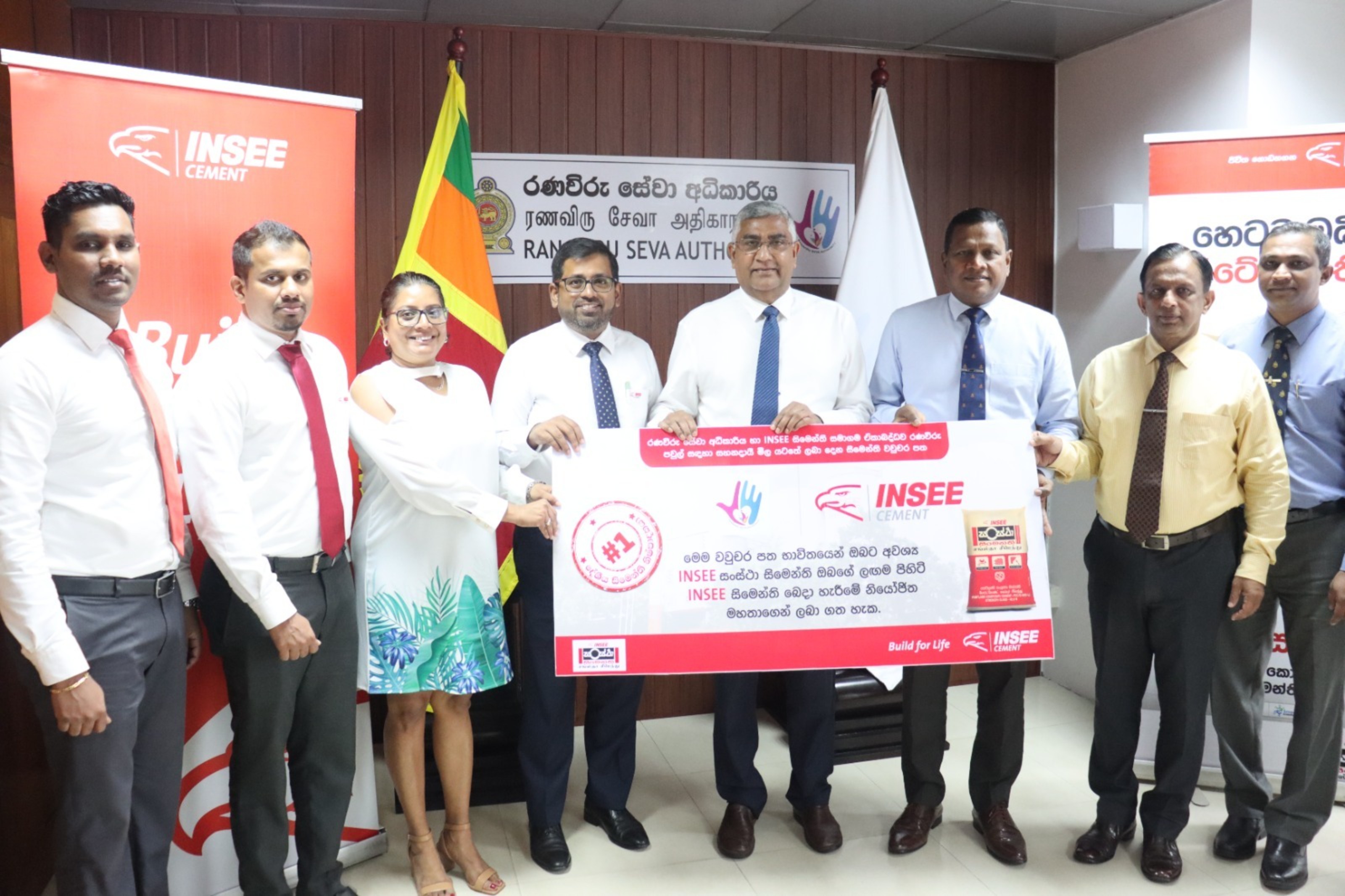 A Memorandum of Understanding (MOU) was signed by the Chairman of the Ranaviru Seva Authority of the Ministry of Defence Major General Nandana Senadeera (Retired) and Nandana Ekanayake, Chairman of INSEE Cement Sri Lanka. INSEE Cement was also represented by Chandana Nanayakkara, the Head of Channel Development and External Affairs and Gayani Perera, the Head of Marketing.