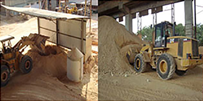 Manufactured clinker is stored in the clinker yard for cement grinding.