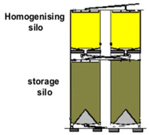 The homogenised material mixture is then sent to the storage silo at the bottom of the raw mill silo.