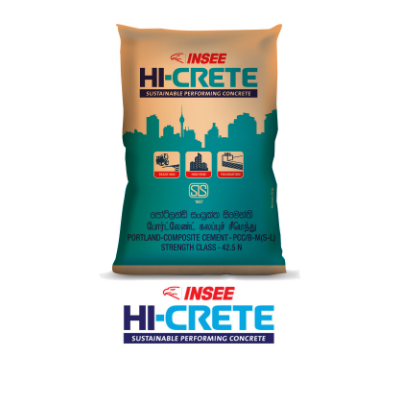 INSEE SANSTHA PORTLAND COMPOSITE CEMENT is the result of years of research and development, engineered with INSEE’s trademarked newly introduced SmartActTM Complex Organo-Mineral Technology. It is a unique superior blended cement with up to 35% clinker replaced with a composition of more than one cementitious mineral addition under the newly established Sri Lanka Standard SLS 1697:2021 Specification for Portland-Composite Cement (PCC). INSEE SANSTHA PORTLAND COMPOSITE CEMENT is produced as two variants; a ternary composition Combining of either fly ash or slag with high-grade calcium carbonate.