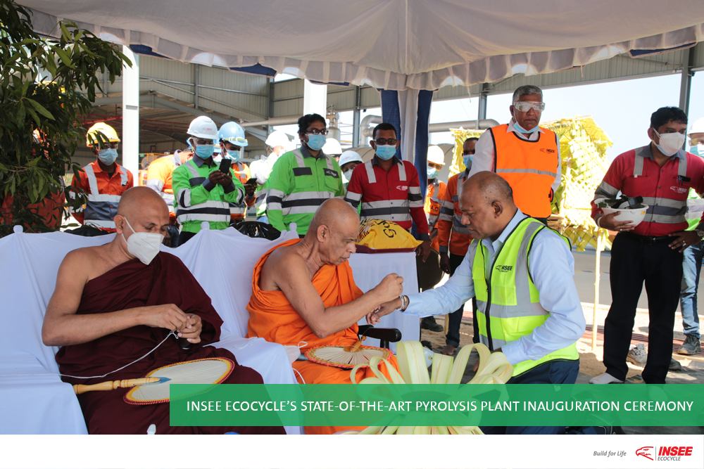 INSEE Ecocycle’s new Pyrolysis Plant was inaugurated at a special ceremony held recently, where the General Daya Rathnayake secretary to the Ministry of Industries, graced the occasion as Chief Guest. Other notable dignitaries present at the event included, M. K. D. Lawrance, Executive Director (All Zones) of the Board of Investment of Sri Lanka, Saman Kumara, Director of the Provincial Environmental Authority of North Western Province, N.G. Senavirathna , Director of North western Provincial Office of Central Environment Authority, Rangana Jayathilake, Divisional Secretary Puttalam , D M K Dissanayake , Assistant Director of Puttalam District Office of Central Environment Authority, Nimal Perera, Deputy Inspector General of Police (DIG) of Puttalam , Nandana Ekanayake, Chairman/CEO of INSEE Cement, Sanjeewa Chulakumara, Director of INSEE Ecocycle, Serefin Bugeja, Manufacturing Director of INSEE Cement , Jan Kunigk , Sales, Marketing & Innovation Executive VP of INSEE Cement , Wasantha Nandasiri , Chief Financial Officer of INSEE Cement, Charles Roshantha , Plant Manager of Puttalam Cement Works of INSEE Cement. Members of the INSEE Ecocycle and INSEE Cement management team were also present at the ceremony.