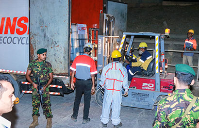 The liquified material is then transported to the Puttalam Cement Plant where the second phase of the disposal takes place. Transportation is carried out via intermediate bulk containers using GPS-enabled, specially built hazardous waste transporting vehicles which are especially modified truck fleets with a secondary compartment to manage spillage as proactive emergency preparedness. These fleets carrying the consignments are entrusted to specially trained drivers and assistants and are escorted entirely by the Sri Lanka Police and the Police Narcotics Bureau officials.