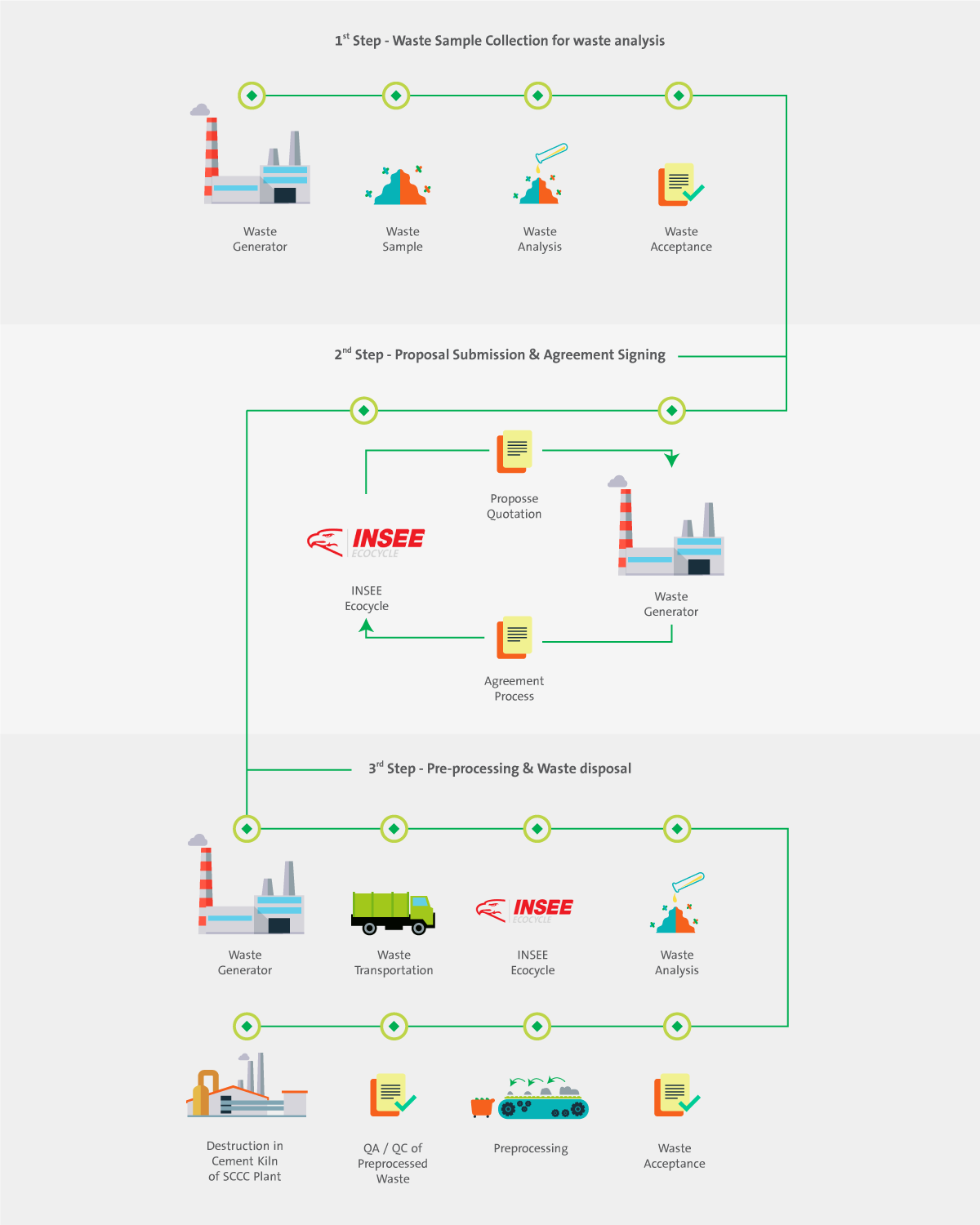 Co-processing is a unique industrial process offered for the proper management of industrial waste through thermal treatment. It is the combination of the two-fold process of clinker manufacturing and industrial waste treatment, both carried out in the same environment as a single combined operation without any adverse effects on each other.