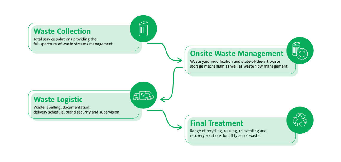 INSEE Ecocycle provides integrated on-site waste management solutions covering the full spectrum of waste streams in your organization from waste generation to final resource recovery through recycling, upcycling, reusing and co-processing. This effectively closes the loopholes in your manufacturing process contributing to a circular economy by achieving your corporate sustainability objectives.