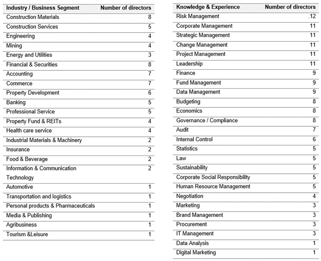 The Board consists of directors with qualifications, competencies, independence and diversity in age, gender, skills and experiences. The Board also has a proper proportion of independent directors, with number of non-executive directors more than half of the total Board members. The Board is of the opinion that its size and composition are suitable with the size, sector and complexity of the Business, as well as aligns with the principle of the good corporate governance. Board composition has evolved and is appropriate.