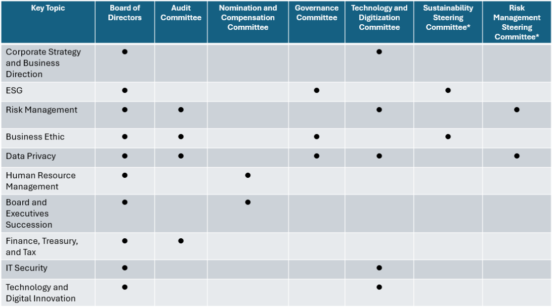 Remark: * Management-level committee which is chaired by the assigned director from the Board of Directors.