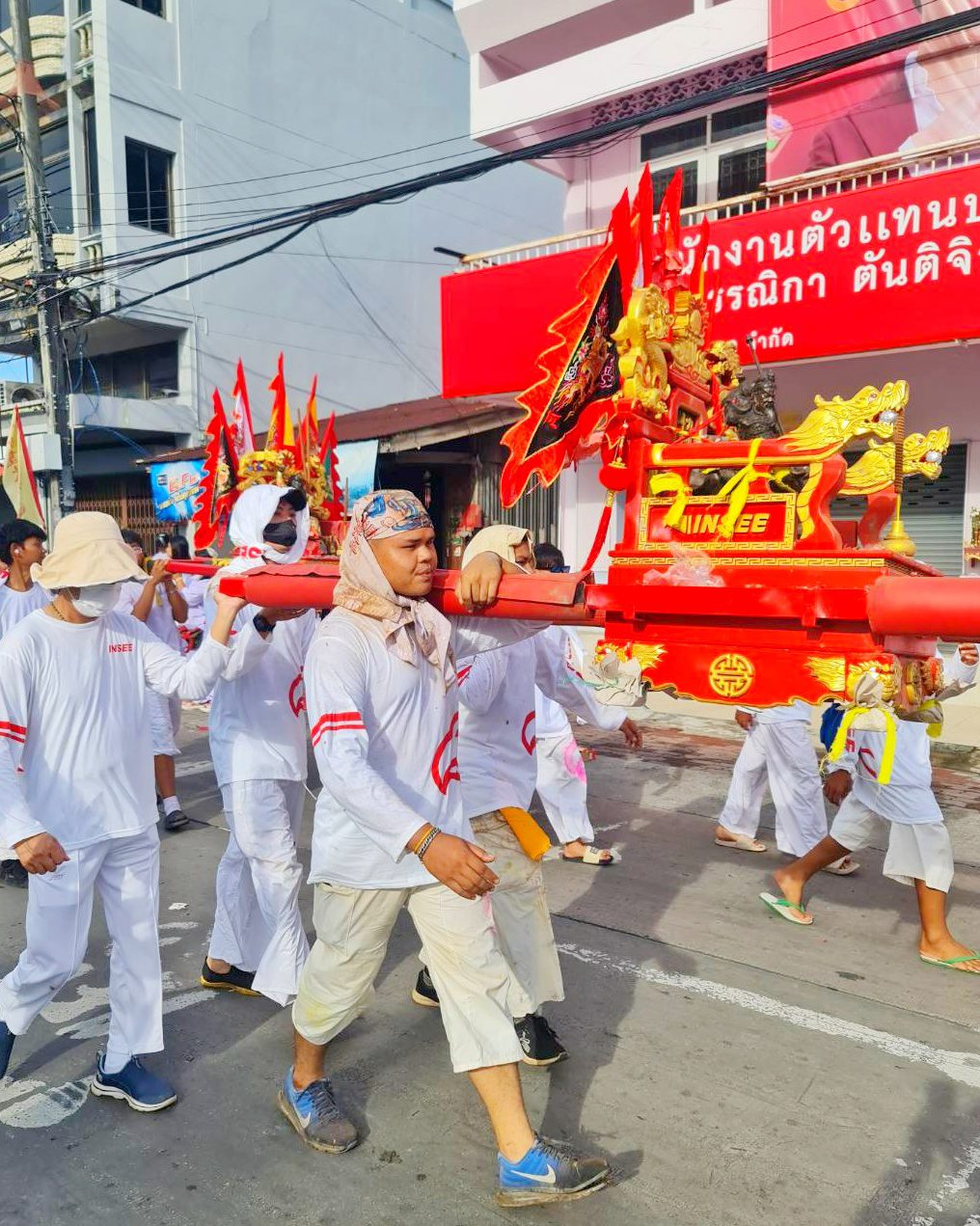 INSEE, led by INSEE South Region, participated in the annual Phuket Vegetarian Festival 2023 by supporting funds and white t-shirts to 5 Chinese shrines to wear during the festival. On 20-21 October, INSEE and dealer, HEAPHIM PHANICH LTD., PART., joined together to give away 250 packs of bottle of waters during Buddha statue parade. This is the good way to build brand awareness and relationship with the community. This year, the festival held on 15-23 October 2023 with more than 40 renowned Chinese shrines joined the festival. The festival celebrates the local Chinese community's belief that abstaining from meat and other negative stimulants during this time will bring good health and a clear mind.