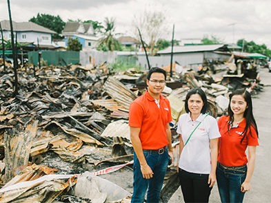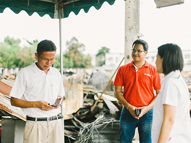 Warajchara Thungkaew, Commercial Department Manager and Poothorn Sornsiri, Customer Solution Consultant, representative of INSEE Mortar, Siam City Cement PCL or INSEE Cement made a donation of 400 t-shirts and bags to Italian-Thai Development PCL to help fire victims at housing for construction workers in Don Muang District. The donation was received by a representative Prawet Thongboriboon, Civil Engineer at Italian-Thai Development PCL on July 9, 2016.