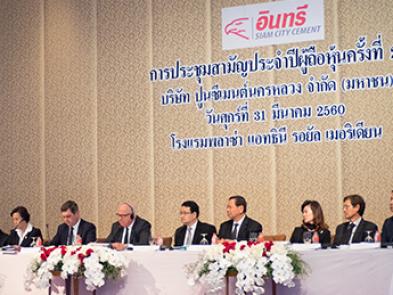 Siam City Cement Public Company Limited led by Board of Directors and Executive Committees held the Annual General Meeting of Shareholders No. 24 at the Grand Hall, Plaza Atenee Bangkok A Royal Meridien Hotel on March 31st , 2017 during 14:00 hrs. – 17:00 hrs. This meeting was well accepted and participated by SCCC shareholders.
