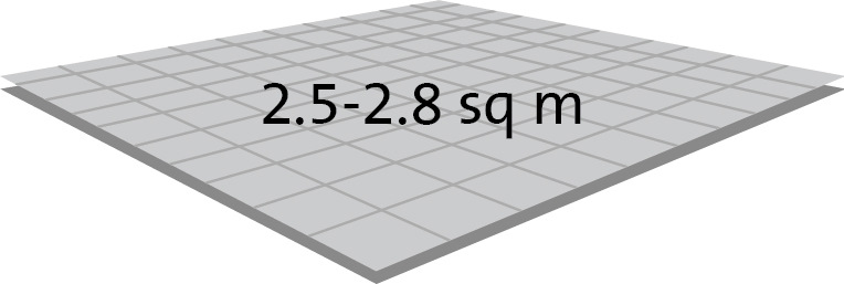 50 Kg (1 bag) per 10-12 litres of clean water can cover an area of approximately 2.5-2.8 Sq m at 1 cm of thickness