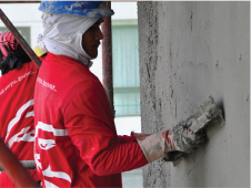 Insee Plastering Solution consists of bulk plastering mortar with silo, mixing conveying system and plastering machine. The solution has several advantages over conventional wall plastering, including a faster working process, less labor demand, better consistency and reduced wall cracks and lower total cost.