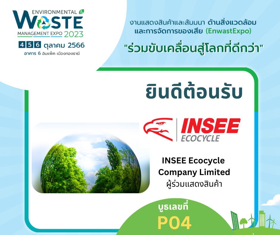 On behalf of INSEE Ecocycle, we cordially invite you to join us in the “Movement Towards A Better Planet” at the Environmental and Waste Management Expo (Enwastexpo) 2023. This event exhibition offers products and services that related to environmental and waste management through collaboration between Environmental Management Industry Club under the Federation of Thai Industries and the Sustainable Waste Management Association. With the support of Co-host from the government agencies who are responsible for an environmental regulatory oversight - the Department of Industrial Works, the Department of Pollution Control, the Industrial Estate Authority of Thailand, the Department of Primary Industries and Mines, the Department of Climate Change and Environmental Quality as such.