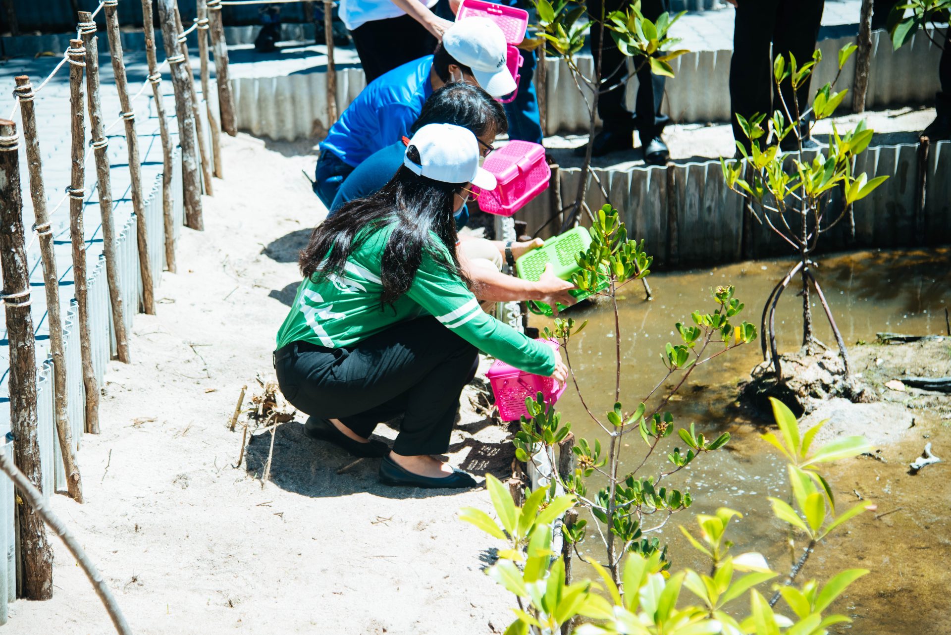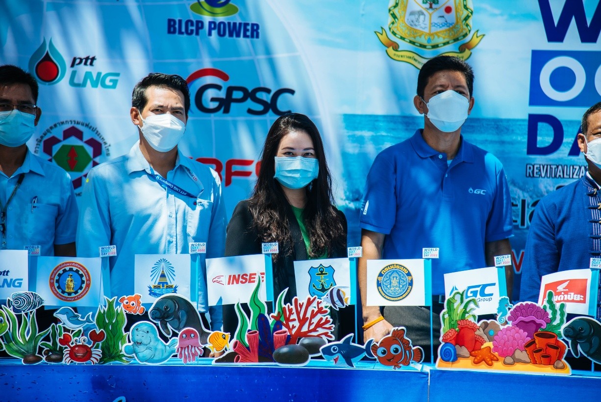 INSEE Ecocycle Company Limited attended the “World Ocean Day 2022 Revitalization: Collective Action for the Ocean”. An event recently held by Marine and Coastal Resources Office 1 of Department of Marine and Coastal Resources, Ministry of Natural Resources and Environment, at Mangrove Forest Learning Center, Phra Chedi Klang Nam, Rayong province. Suchintana Viraratt (4th from left), Chief Executive Officer at INSEE Ecocycle, acted as a representative of the Group Company handed over 200 bags of cement to Marine and Coastal Resources Office 1, to build paving blocks from the plastic waste in collaboration with Pak Nam Prasae Community, Rayong province, in order to recycle the plastic waste and increase career opportunities and income for the community, received by Lieutenant Pirun Haemarak (3rd from left), Deputy Governor of Rayong Province.