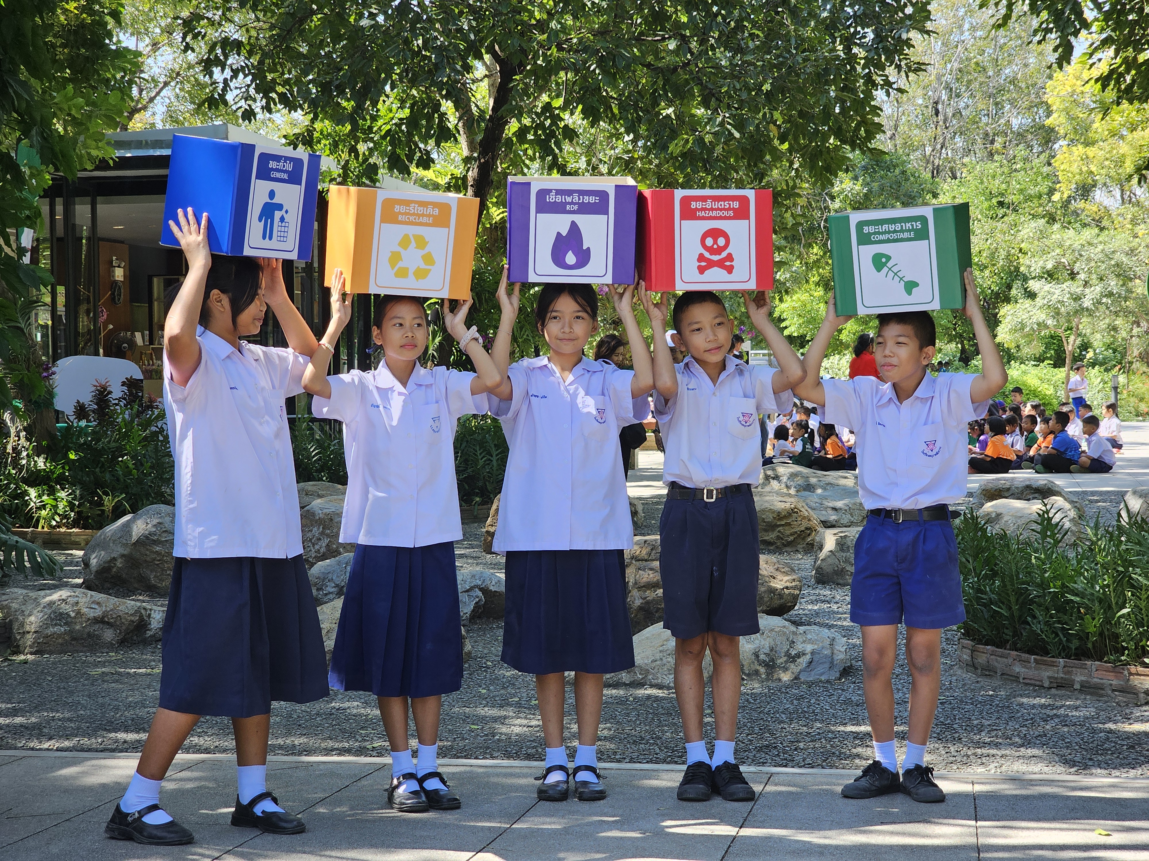 Ms. Suchintana Viraratt, Chief Executive Officer of INSEE Ecocycle, presided over the opening ceremony of the learning activities for 165 students at Anubantabkwang School, divided into 60 kindergarten students and 105 primary school students. INSEE Ecocycle organized a knowledge base on waste segregation and RDF (Refuse-Derived Fuel) to increase the understanding of the importance of waste segregation since their childhood.