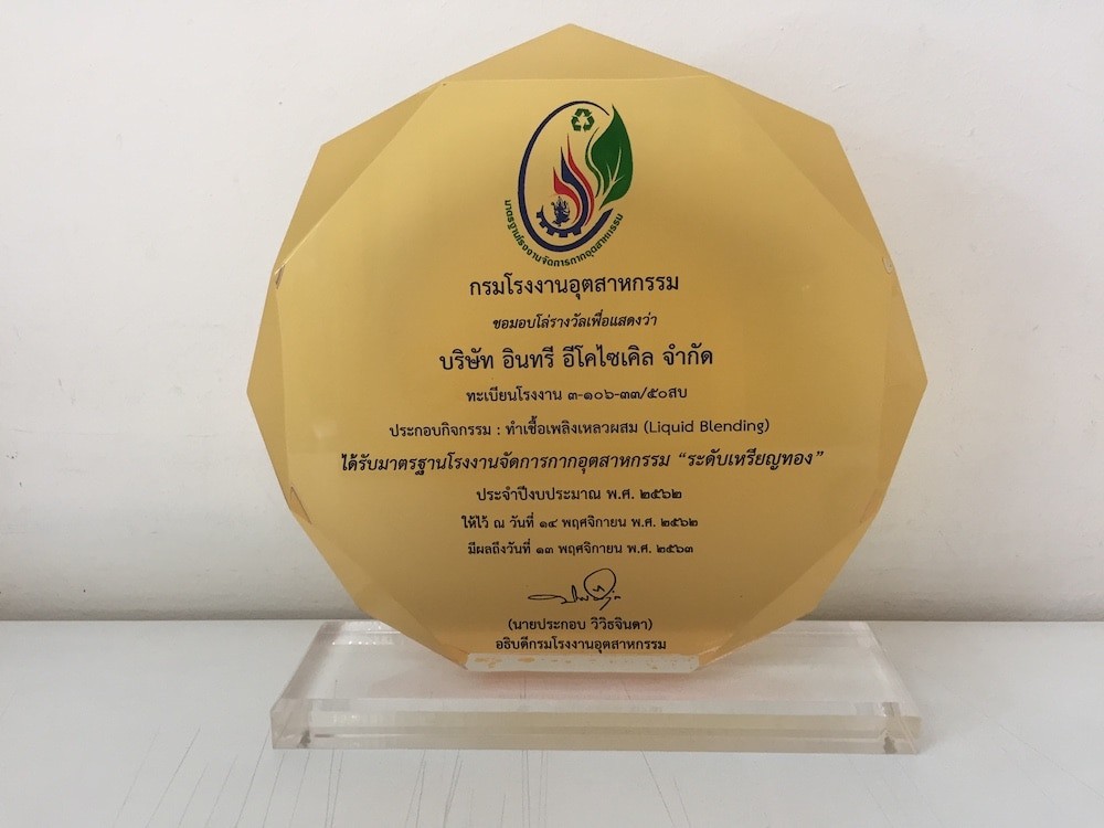 In recognition of excellence in sustainable waste management, INSEE Ecocycle was awarded the “Gold Medal” under the project of standard improvement for waste processor from the Department of Industrial Works, Ministry of Industry in Thailand.