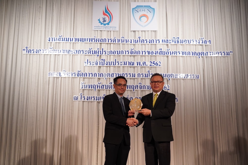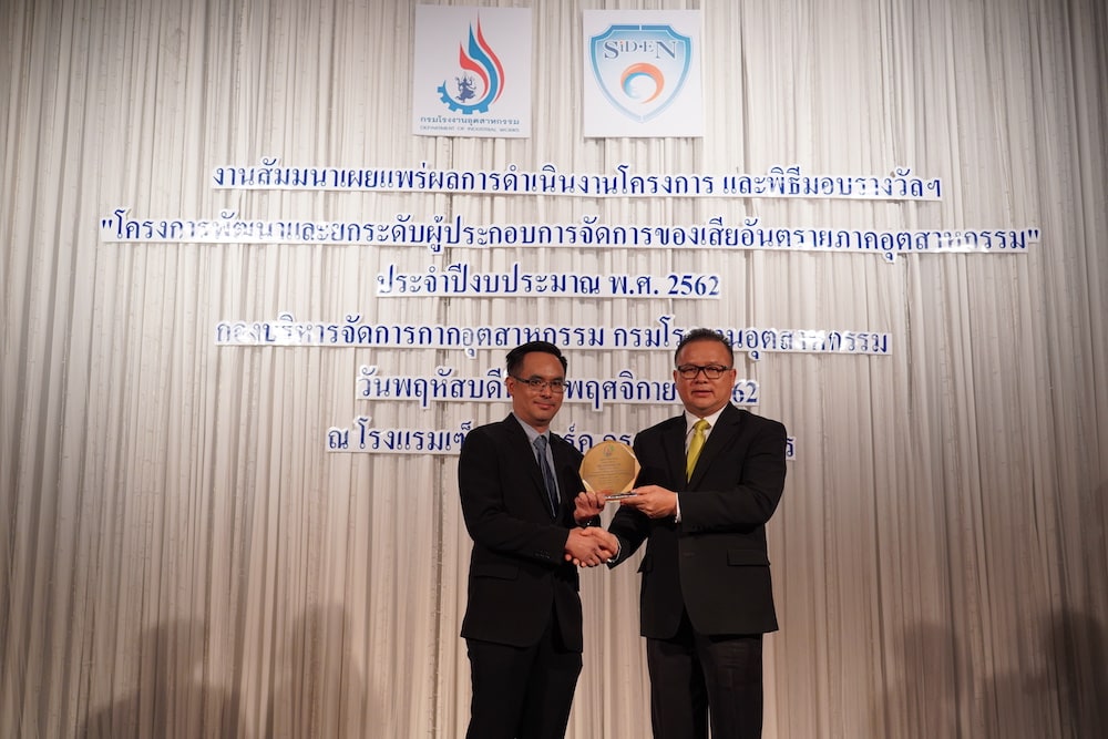 Mr. Ukrit Suksanguan, Waste Management Preparation Division Manager as a representative from INSEE Ecocycle received the God Medal Award in liquid blending activities. The award ceremony was held on November 14, 2019 at Ballroom, Century Park Hotel, Bangkok.