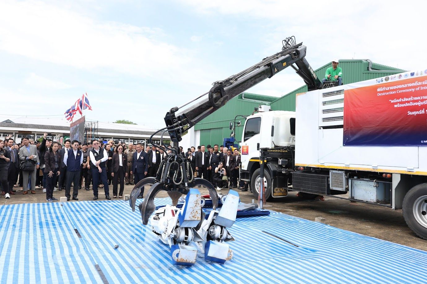 This year’s destruction ceremony eliminated over 1.5 million illegal items worth more than 900 million Baht (USD 28M) — including clothing, cosmetics, auto parts, electronics, and pharmaceuticals.