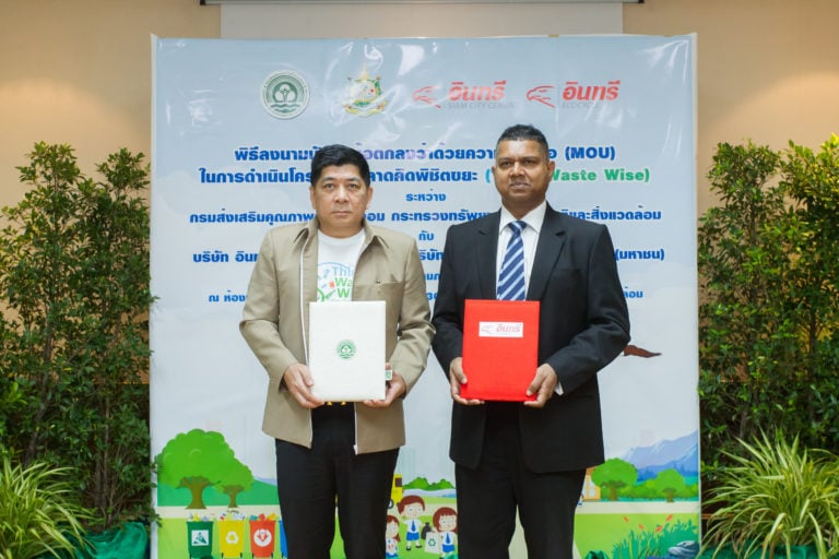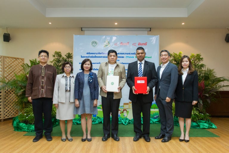 Dr. Vincent Aloysius, Chief Executive Officer of INSEE Ecocycle Company Limited, Khun Yongyut Sangangam Head of Corporate Reputations of Siam City Cement Public Company Limited and Khun Suniti Tangsataporn Business Strategy and Liaison Department Manager of INSEE Ecocycle Company Limited, Rutchada Suriyakul Na Ayutya, Director General, Savitri Srisuk, Director of Environmental Information, Pawinee Saiburi, Director of Public and Promotion, Watt Thabuengkarn (far left) Secretariat of Department of Environmental Quality (DEQP) recently signed a memorandum of understanding (MOU) to promote Think Waste Wise project on waste disposal best practices.