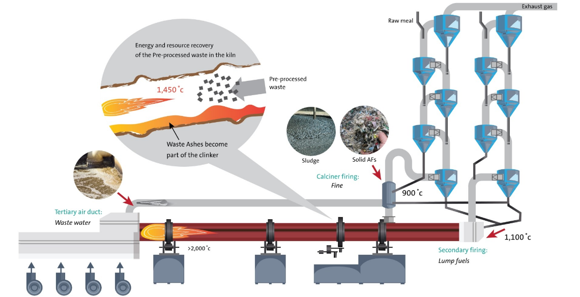 กระบวนการเตรียมของเสียขั้นต้นและการบวนการเผาร่วมในเตาปูนซีเมนต์คืออะไร