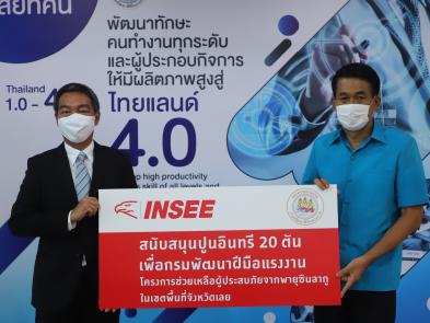 ยงยุทธ สง่างาม (ซ้าย) ผู้อำนวยการภาพลักษณ์องค์กร บริษัท ปูนซีเมนต์นครหลวง จำกัด (มหาชน) หรือ ปูนอินทรี ตัวแทนบริษัทฯ สนับสนุนปูนซีเมนต์ จำนวน 20 ตัน ผ่านกรมพัฒนาฝีมือแรงงาน เพื่อร่วมโครงการฟื้นฟูซ่อมแซมสาธารณะสมบัติ และบ้านเรือนผู้ประสบอุทกภัยจากพายุโซนร้อนซินลากู ในพื้นที่จังหวัดเลย โดยมี ธวัช เบญจาทิกุล (ขวา) อธิบดีกรมพัฒนาฝีมือแรงงาน กระทรวงแรงงาน เป็นผู้รับมอบ ณ กรมพัฒนาฝีมือแรงงาน กระทรวงแรงงาน กรุงเทพฯ เมื่อวันก่อน