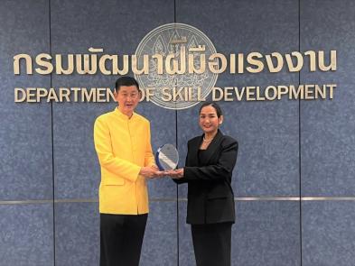 นางสาวสมฤทัย รัตนมณี (ขวา) รองประธานอาวุโส การบริหารบุคลากรและประสิทธิภาพองค์กร บริษัท ปูนซีเมนต์นครหลวง จำกัด (มหาชน) เป็นผู้แทนบริษัทเข้ารับมอบโล่ประกาศเกียรติคุณ เครือข่ายพัฒนาฝีมือแรงงานที่สนับสนุนการดำเนินงานของกรมพัฒนาฝีมือแรงงาน ประจำปี 2565 โดยมี นายบุญชอบ สุทธมนัสวงษ์ (ซ้าย) ปลัดกระทรวงแรงงาน เป็นผู้มอบ ณ ห้องประชุมปกรณ์ อังศุสิงห์ ชั้น 10 อาคารกรมพัฒนาฝีมือแรงงาน กระทรวงแรงงาน