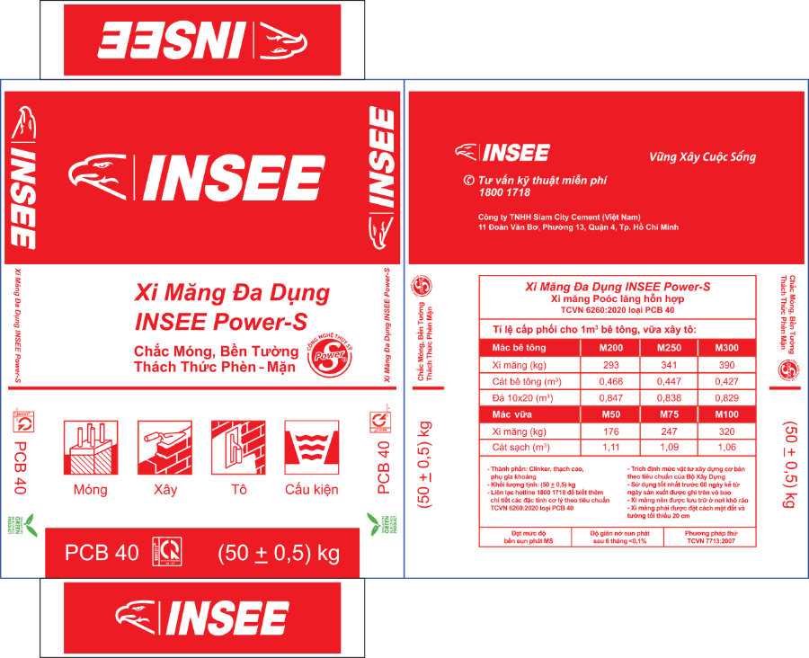 In the near future, INSEE will strongly implement the INSEE Red Cover campaign in Bac Lieu, Soc Trang, Ca Mau, Dong Thap, and An Giang provinces to help consumers distinguish and choose genuine INSEE products, avoiding long-term impacts on construction quality and contractor reputation. Additionally, to help customers distinguish and avoid confusion between INSEE Power-S Multipurpose Cement and other types of cement, please support by advising on the correct identification of INSEE Cement to homeowners and contractors and promptly notify INSEE Vietnam when detecting any misleading or false information through INSEE Trade, official communication channels of INSEE, or the hotline 18001718.