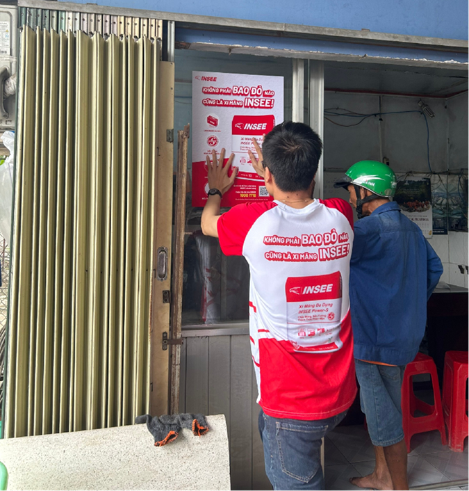 In addition to rigorous legal actions to protect consumers, INSEE is currently implementing the INSEE Red Cover campaign at hundreds of stores in key areas. In these stores, INSEE staff emphasize key messages, such as "Holcim has fully transitioned to the INSEE brand since 2017" and "INSEE Vietnam only circulates one type of red bag for the INSEE Power-S product." Besides sharing these messages with store owners, INSEE also aims to spread them to homeowners and contractors through communication materials like wall posters, flyers, table posters, truck and tricycle decals.
