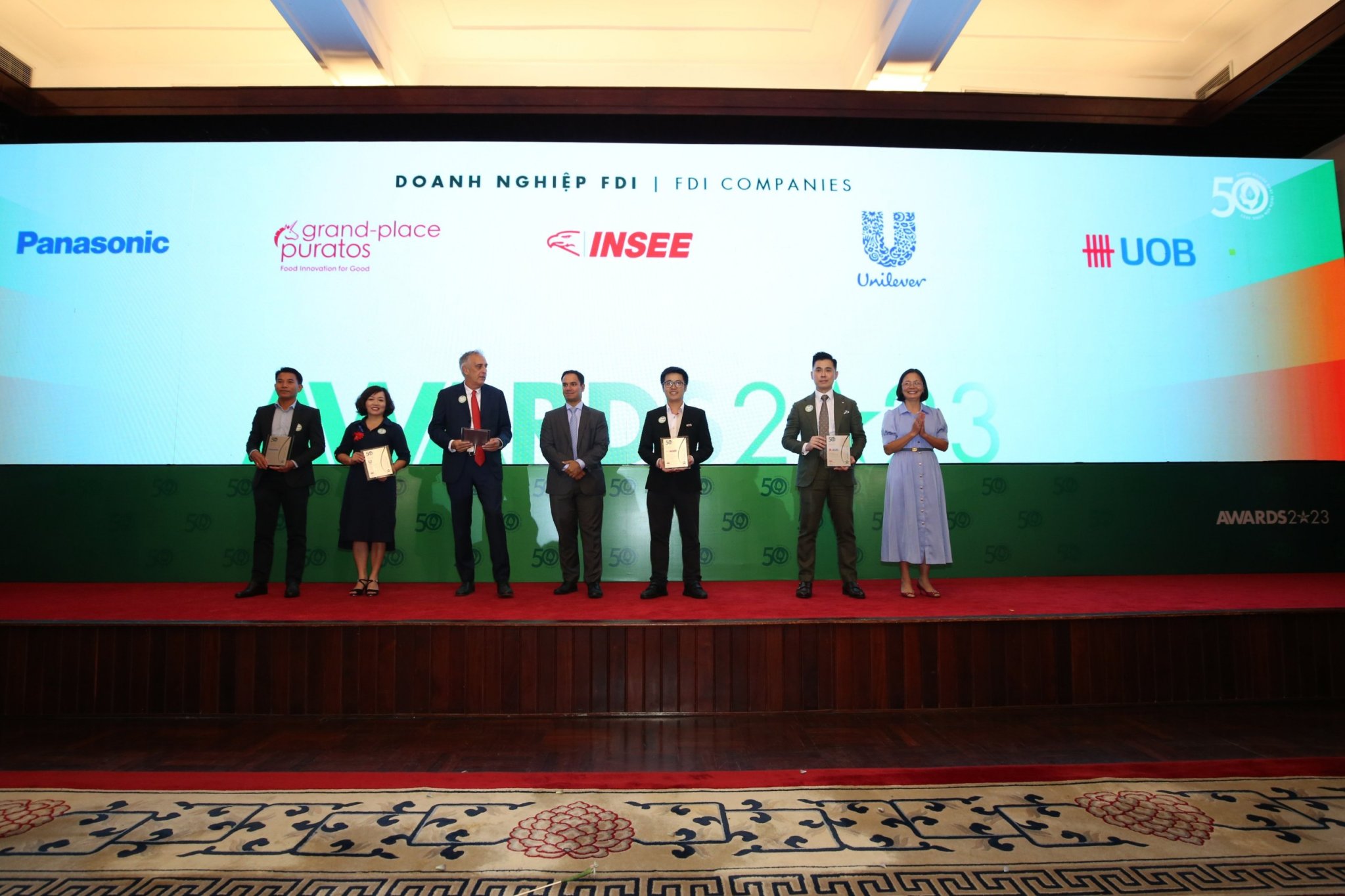 Hình 2: Ông Đào Nguyên Khánh – Trưởng Bộ phận Phát triển Bền vững và Truyền thông Doanh nghiệp đại diện INSEE Việt Nam nhận giải thưởng Top 50 Doanh nghiệp Phát triển Bền vững (CSA) năm 2023