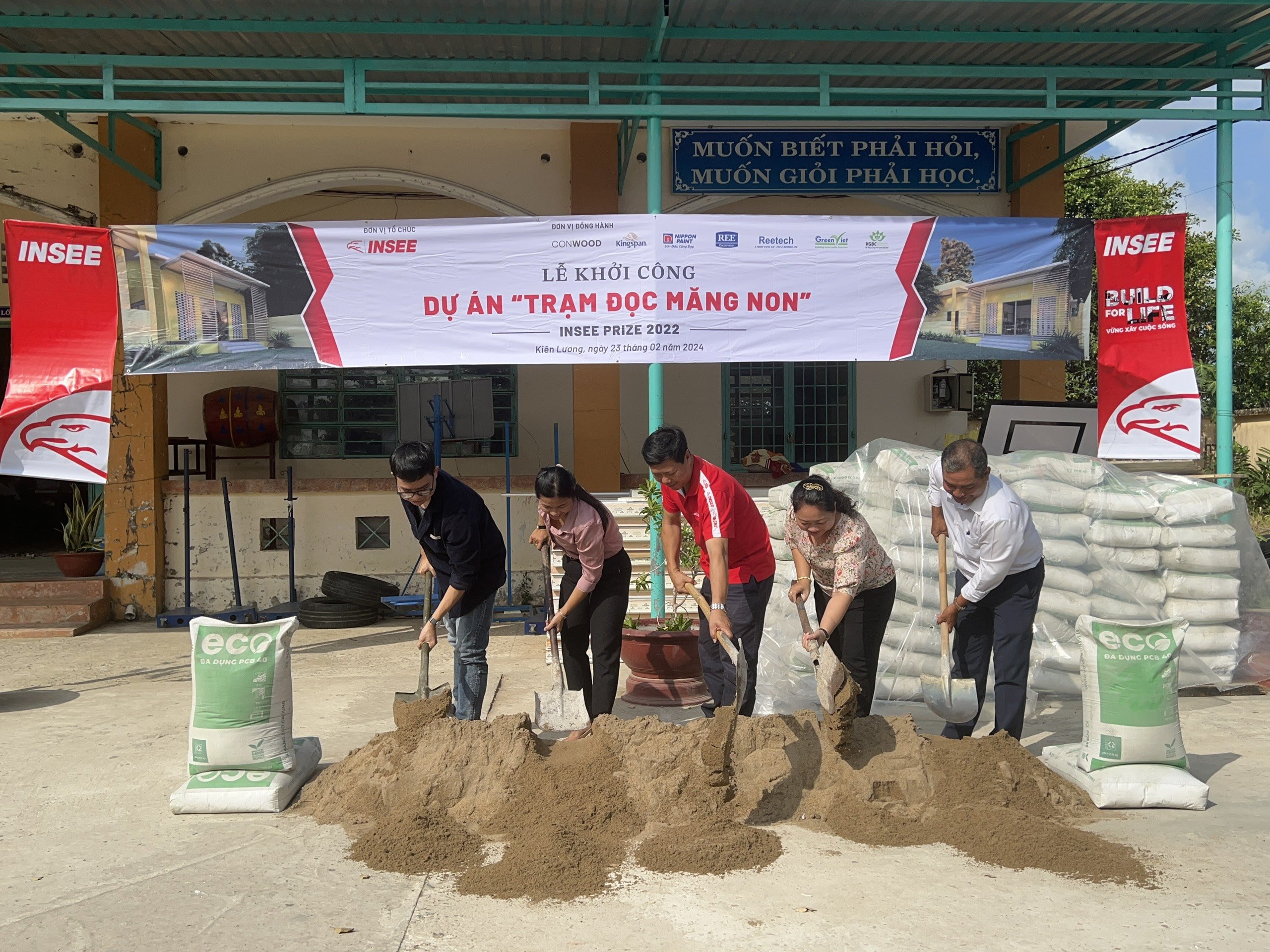 On the morning of February 23rd, 2024, INSEE Vietnam coordinated with local authorities of Binh Tri commune (Kien Luong district, Kien Giang province) to organize the Groundbreaking Ceremony of the “Mang Non” Book Station at Binh Primary & Secondary School. This is the Champion project of the INSEE Prize 2022 from the National University - Ho Chi Minh City University of Technology team.