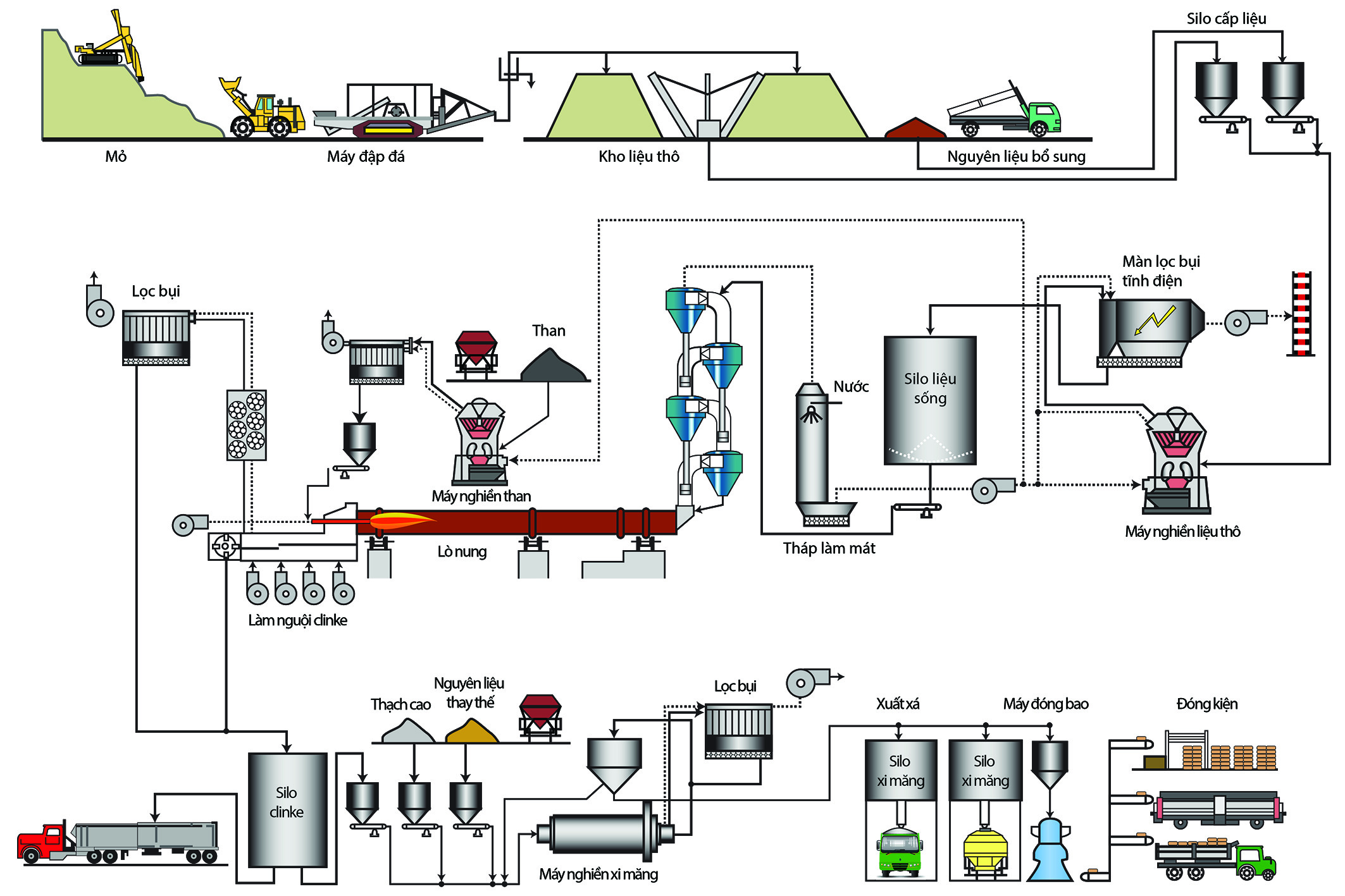 State-of-the-art new suspension process (NSP) kilns include multi-stage pre-heaters and pre-calciners to pre-process raw materials before they enter the kiln and an air-quench system to cool the clinker product. Kiln exhaust streams, from the clinker cooler and the kiln pre-heater system, contain useful thermal energy that INSEE can convert into power. Optimizing furnace technology performance is important for efficient plant operation, utilizing exhaust heat from the preheater tower and clinker cooling system to generate electrical energy to partially compensate for electrical energy that must be purchased from the national grid. Waste heat recovery power plants bring great benefits to the economy, society, and environment, meeting 25% of the power demand of the plant, equivalent to the amount of electricity for 18,000 households in 1 year. The power plant with a capacity of 6 MW reduces the burden on the national grid and helps INSEE indirectly save about 25,000 tons of carbon emissions in a year, equivalent to 9,300 tons of coal.