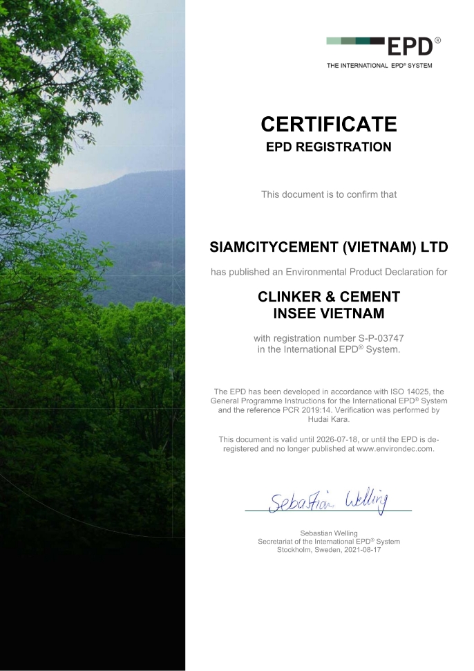 Toàn bộ danh mục sản phẩm của INSEE được cấp chứng nhận “Nhãn Xanh” do SGBC (Hội đồng Công trình Xanh Singapore) và VGBC (Hội đồng Công trình Xanh Việt Nam) phê duyệt. Hơn nữa, sản phẩm của INSEE còn đạt tiêu chuẩn của các hệ thống đánh giá uy tín như LEED, Lotus và Green Mark. INSEE là công ty xi măng đầu tiên ở Đông Nam Á đạt chứng nhận EPD (Tuyên bố sản phẩm thân thiện với môi trường) quốc tế.