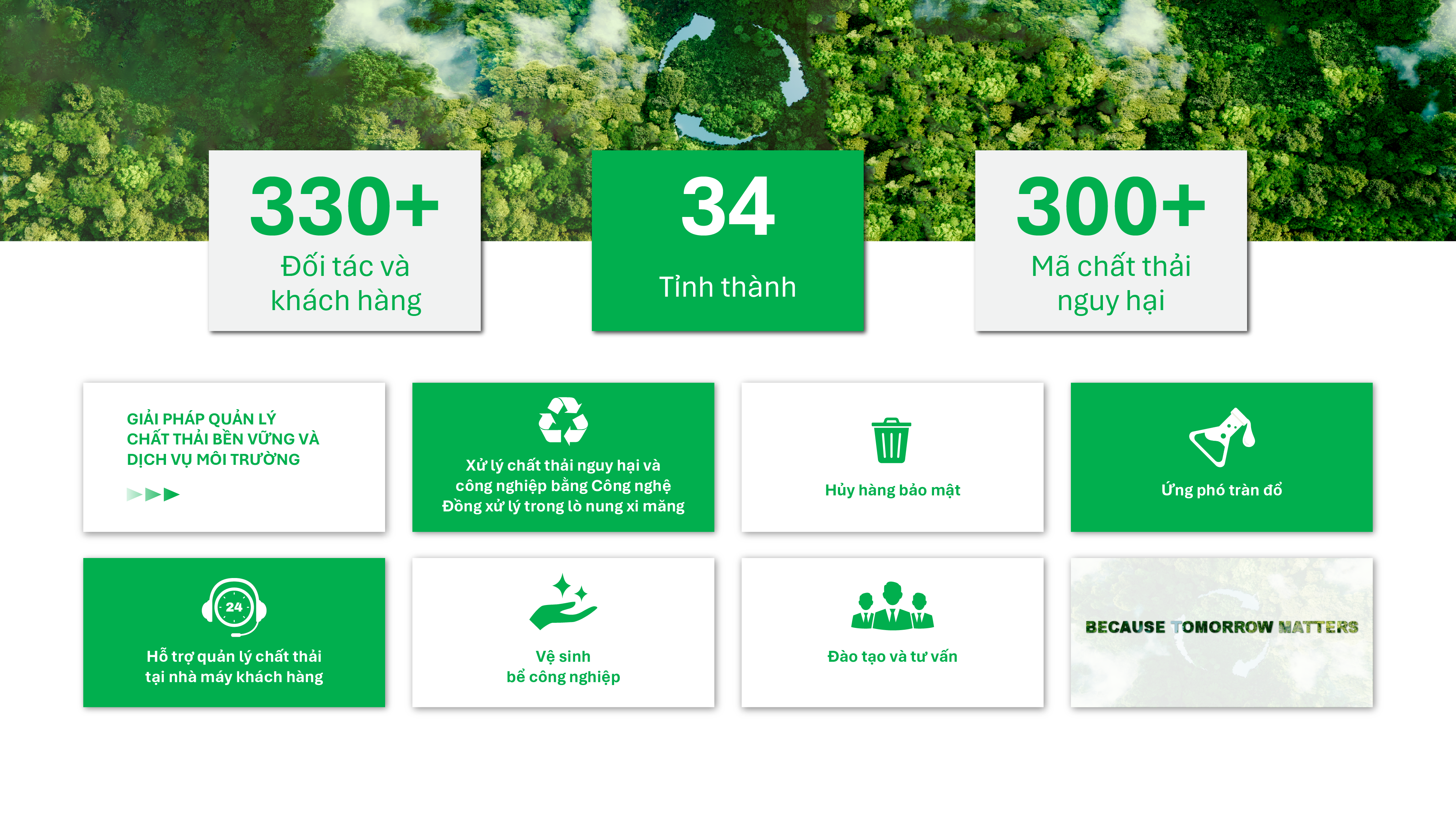 INSEE Ecocycle Việt Nam xử lý hơn 100.000 tấn chất thải mỗi năm nhằm chung tay cùng khách hàng bảo vệ môi trường, phát triển bền vững thông qua công tác quản lý chất thải hiệu quả, giúp nâng cao uy tín và tăng thêm lợi thế cạnh tranh của khách hàng