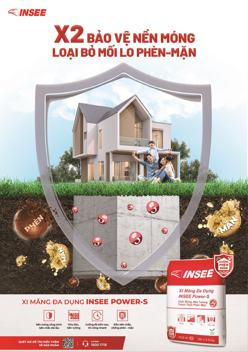 • Ưu tiên các thương hiệu và sản phẩm chất lượng đã đạt chứng nhận: Phần nền móng và các cấu kiện bê tông luôn là phần quan trọng nhất của một công trình, nên hãy ưu tiên lựa chọn các thương hiệu uy tín, lâu đời như INSEE với sản phẩm xi măng đa dụng INSEE Power-S để đảm bảo công trình được chắc móng, bền tường, thách thức phèn, mặn. Với INSEE Power-S, ngôi nhà của bạn sẽ được bảo vệ từ trong ra ngoài nhờ hoạt chất Power-S có khả năng len lỏi, lấp kín những lỗ rỗng li ti mà mắt thường không nhìn thấy được, đồng thời hạn chế xâm thực của các tác nhân ăn mòn như không khí, tạp chất, nước nhiễm phèn, mặn...