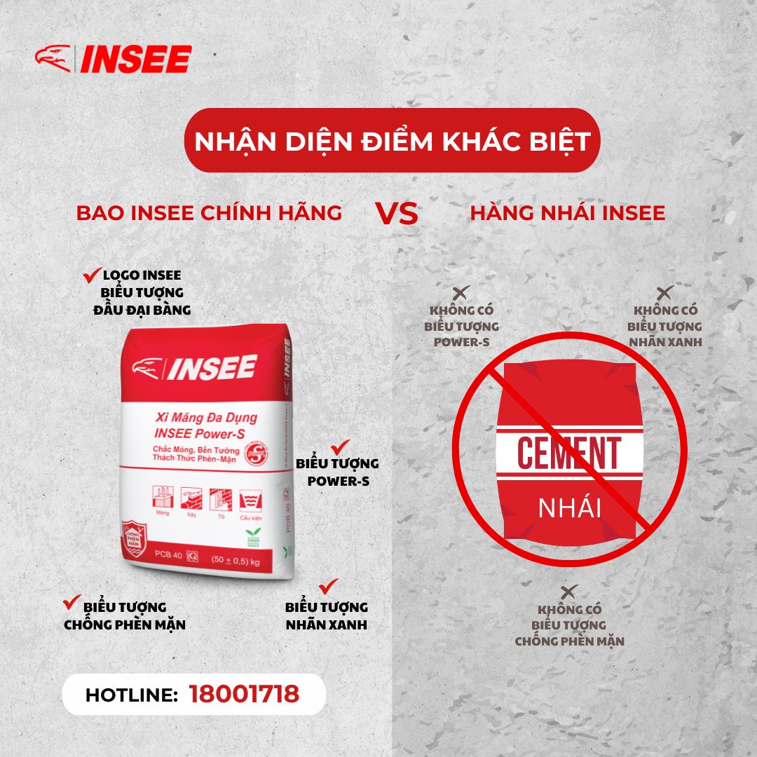 Với hành trình 30 năm đồng hành cùng các công trình, INSEE đã trở thành một trong những thương hiệu xi măng được tin cậy nhất, đặc biệt với bao bì màu đỏ đặc trưng. Tuy nhiên, trên thị trường xuất hiện những hành vi cạnh tranh không lành mạnh. Để giúp Quý Khách Hàng dễ dàng phân biệt sản phẩm chính hãng, xin lưu ý phân biệt những đặc trưng chỉ có trên bao bì INSEE: