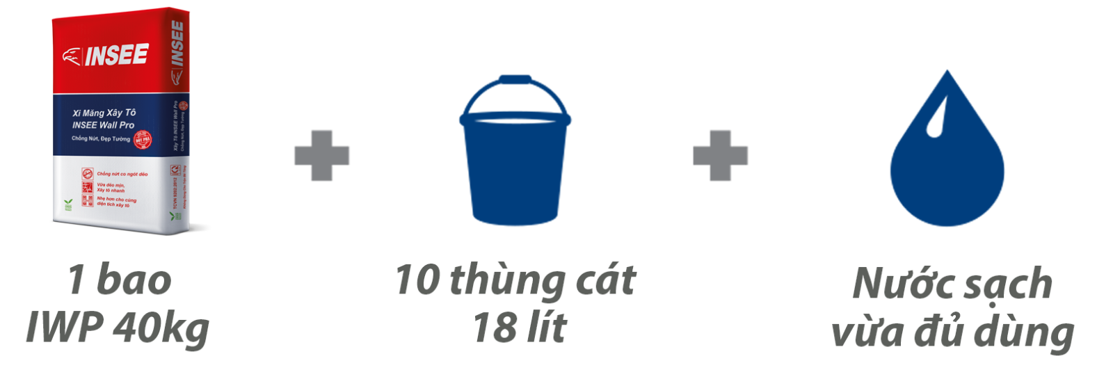 Chỉ cần trộn vữa khô xây tô INSEE Wall Speed với lượng nước sạch vừa đủ là có ngay hỗn hợp có khả năng bám dính cao, cho bề mặt tường hoàn thiện láng mịn và hạn chế rạn nứt.